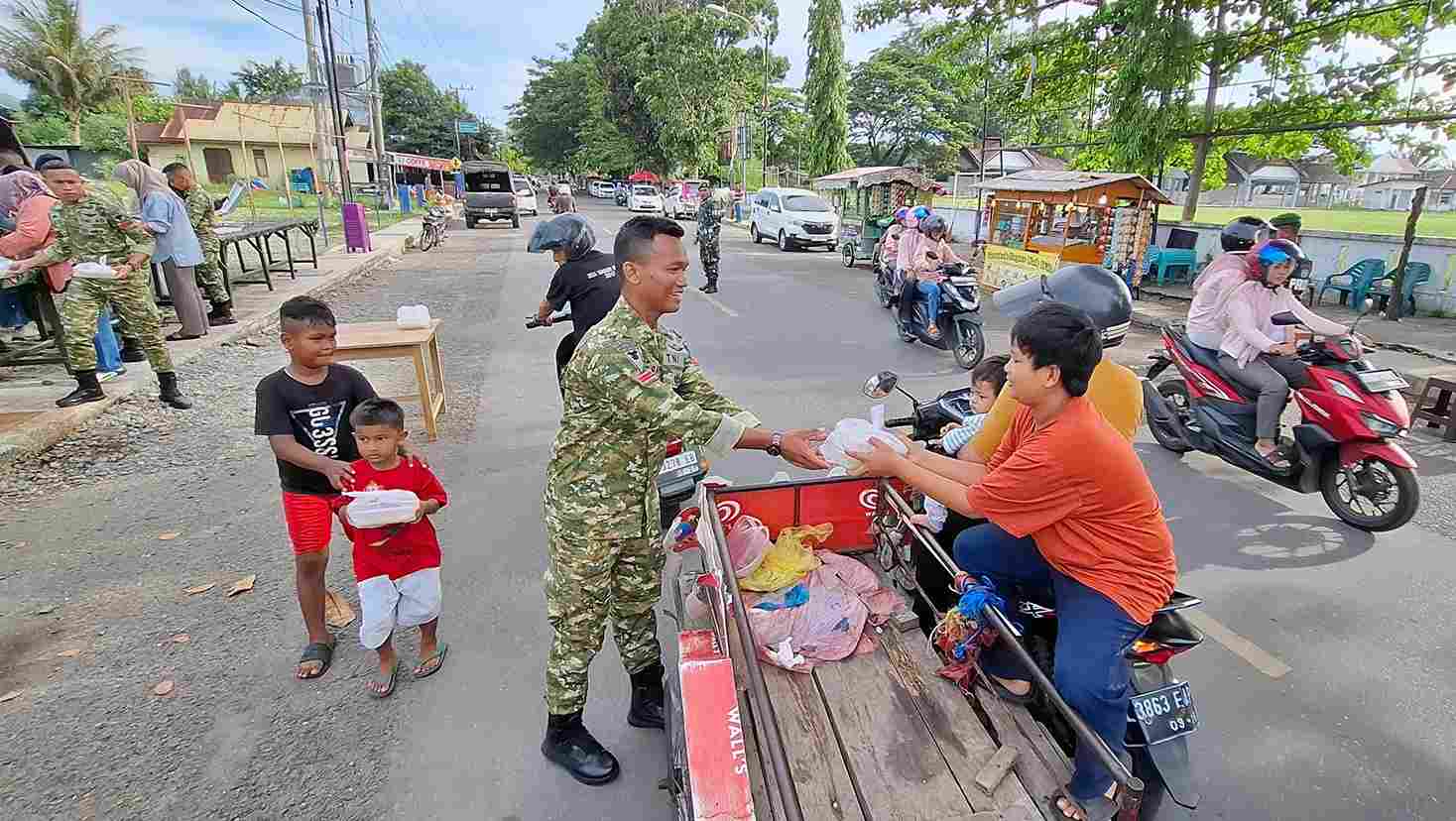 Kibaan.co | Aceh Barat – Batalyon Infanteri 116/Garda Samudra menggelar kegiatan sosial berbagi takjil kepada masyarakat dalam rangka menyemarakkan bulan suci Ramadan 1447 Hijriah. Kegiatan tersebut berlangsung meriah dengan berbagai rangkaian aktivitas ngabuburit bersama masyarakat.
